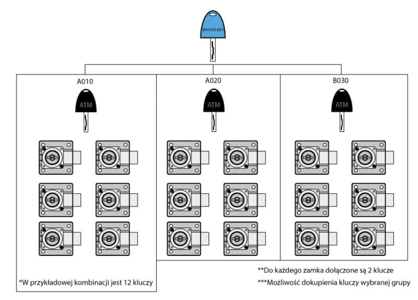 Mēbeļu atslēga uzliekama ATM300 ar atslēdziņu D200, C