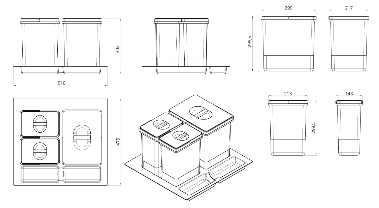 Atkritumu konteineris WS-500 1x15l, 2x7l, ar paplāti