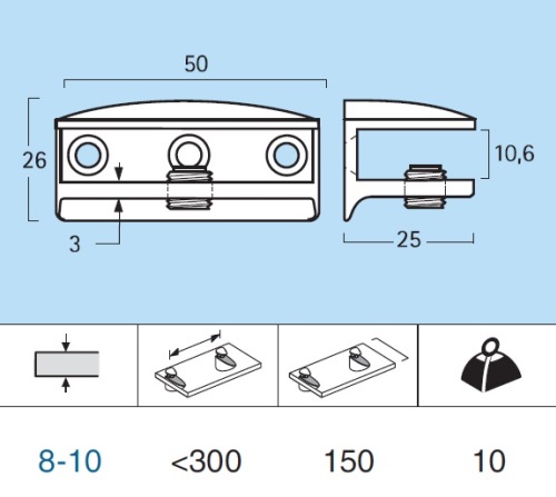 Stikla plauktu turētājs REI E-89, 8-10mm
