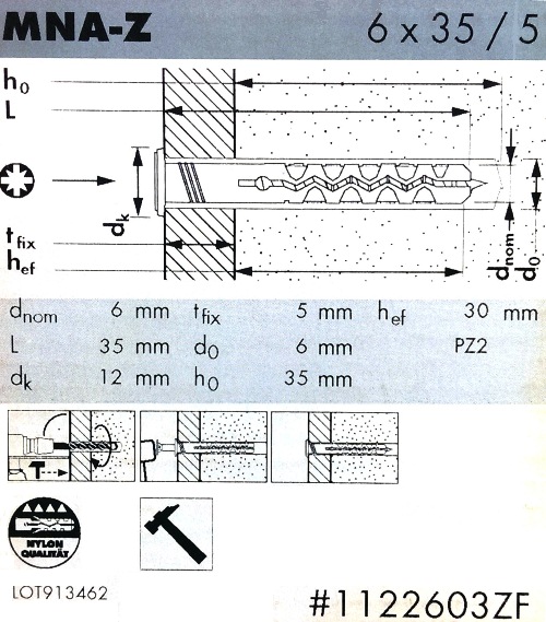 MUNGO dībeļnaglas MNA-Z 6x35, ar atloku